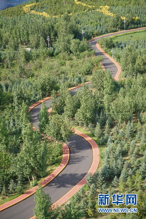 白泉山公园里的公路从林中穿梭而过。新华网丁凝摄
